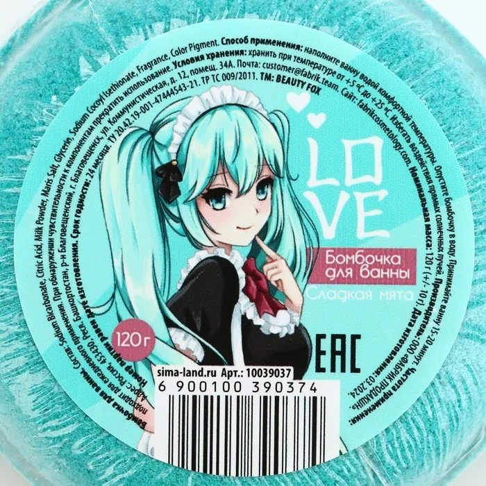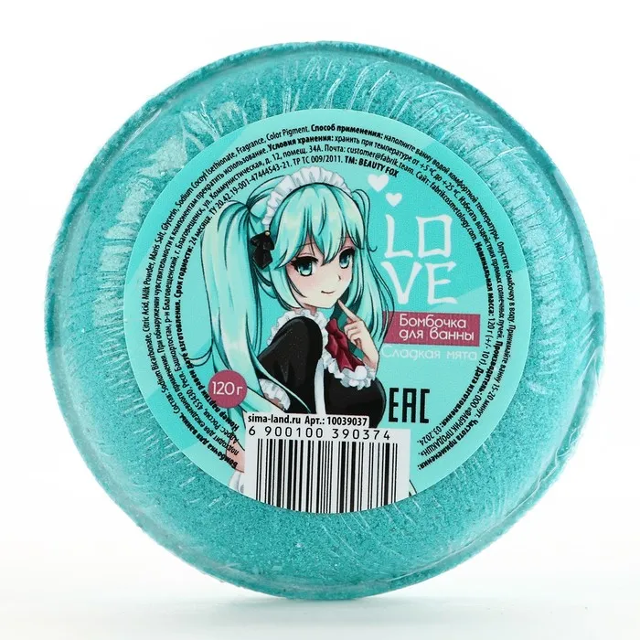 Бомбочка для ванны LOVE, 130 г, аромат мяты, Beauty Fox — Характеристики