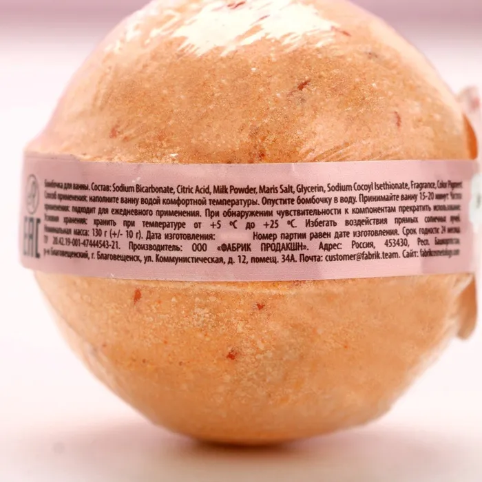 Бомбочка для ванны «С 8 Марта!», 130 г, аромат сладкого персика, Чистое счастье — Характеристики