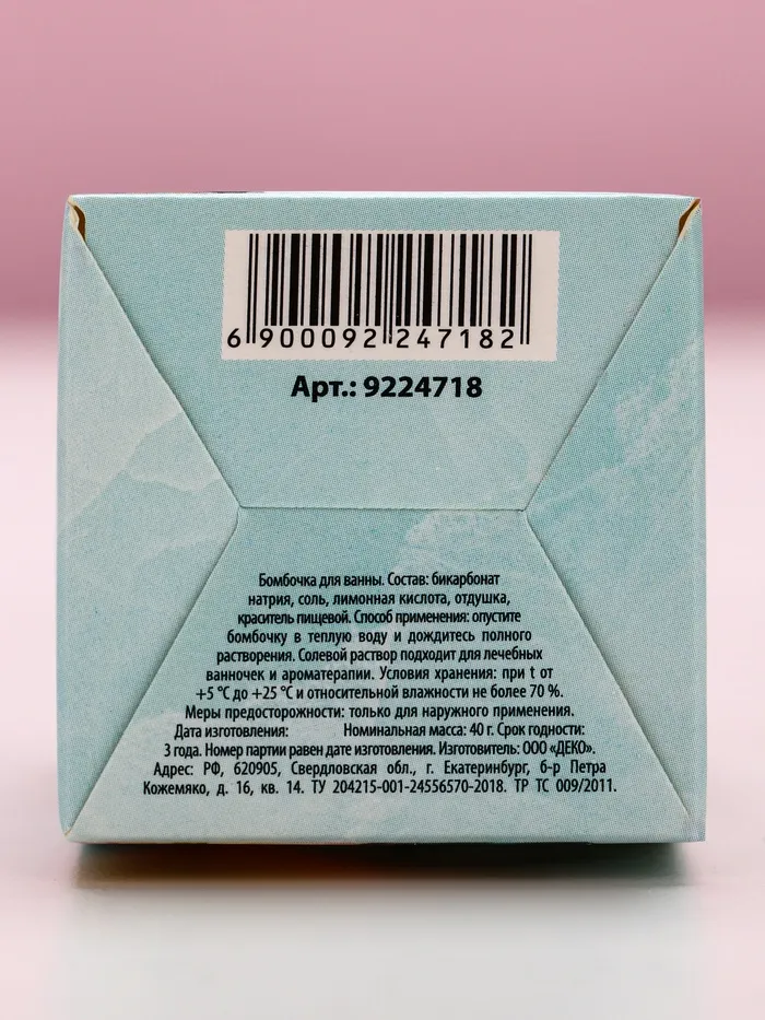 Бомбочка для ванны «С 8 Марта», 40 г, аромат мятного фреша, Чистое счастье — Характеристики