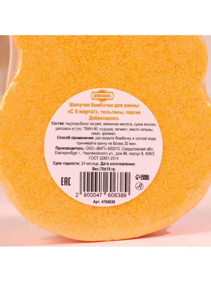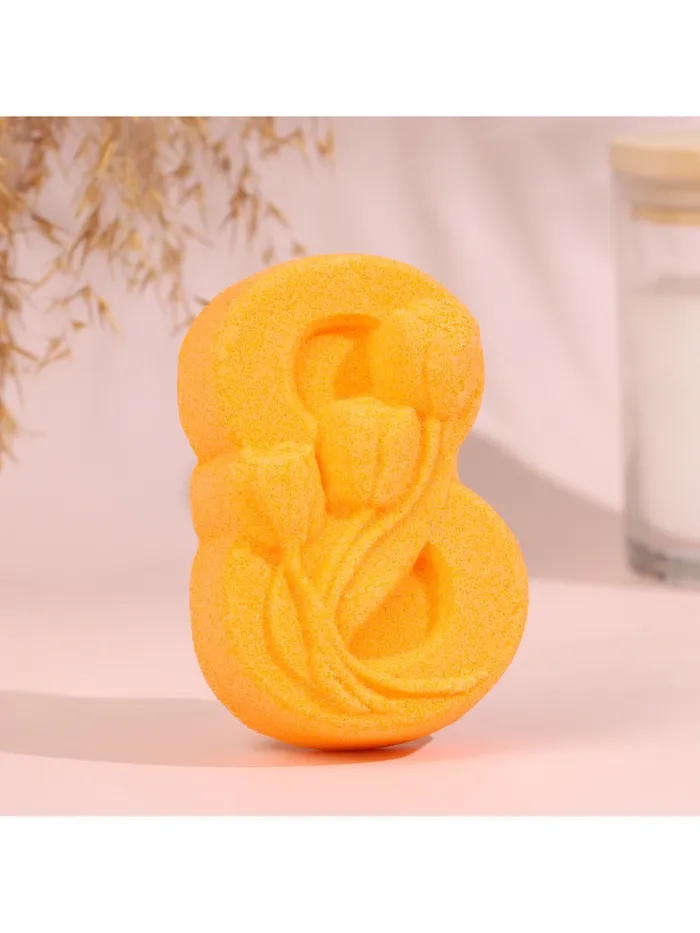 Бомбочка для ванны "С 8 марта с тюльпанами", 75 г, с ароматом персика, оранжевая — Характеристики