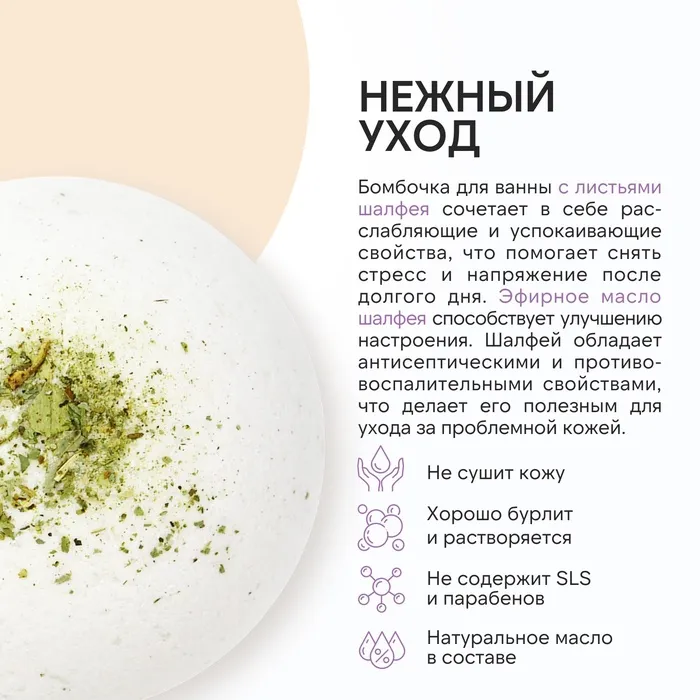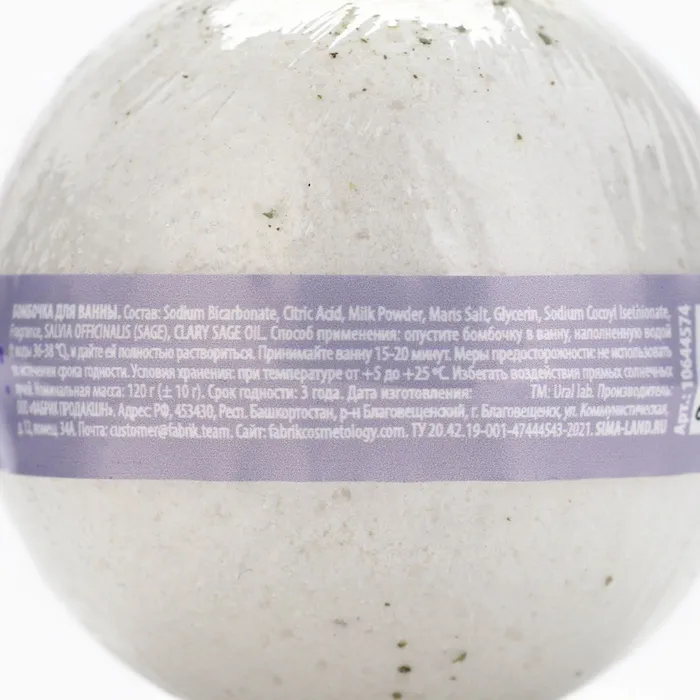 Бомбочка для ванны с листьями шалфея, 120 г, URAL LAB — Характеристики