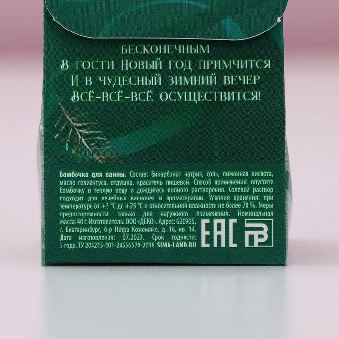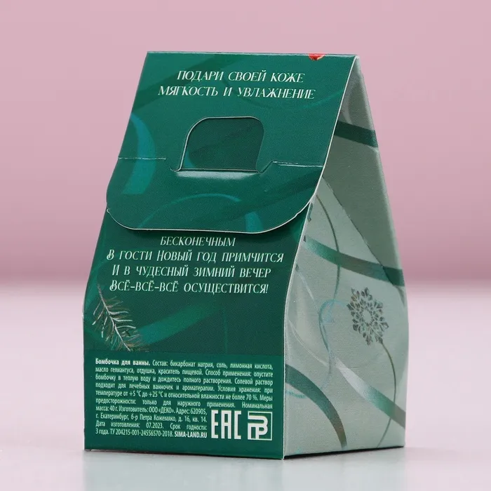Бомбочка для ванны «С Новым Годом», 40 г, аромат яблочного пудинга, Чистое счастье — Характеристики