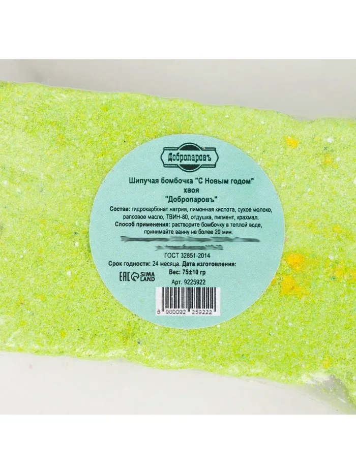 Бомбочка для ванны "С Новым годом" хвоя, зеленая 65 гр "Добропаровъ" — Характеристики