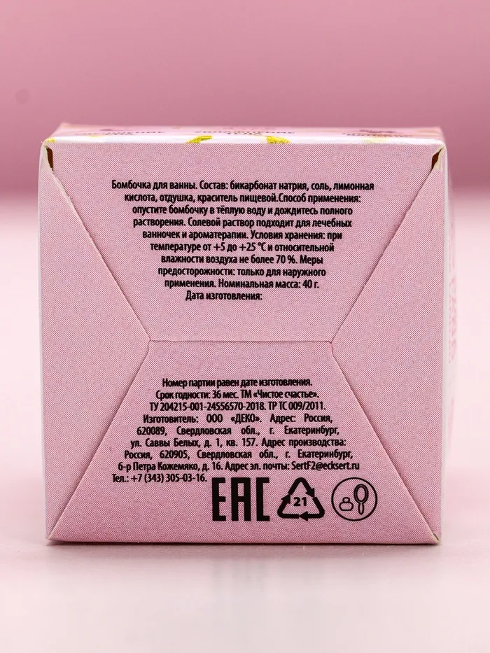Бомбочка для ванны «Самой прекрасной», 40 г, аромат сладкой ванили, Чистое счастье — Характеристики