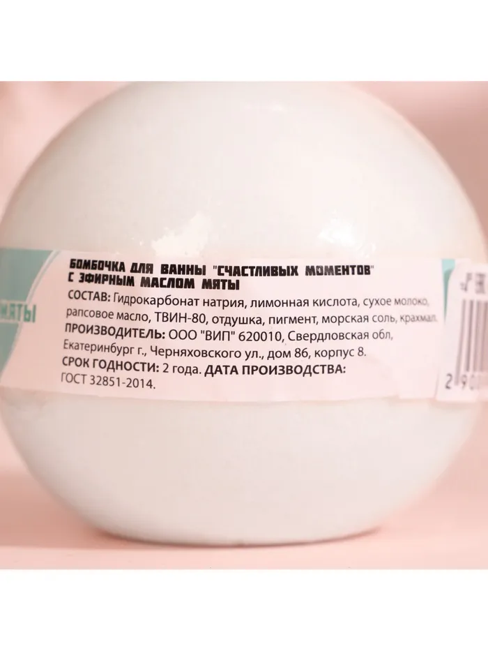 Бомбочка для ванны "Счастливых моментов" с эфирным маслом мяты, 140 гр — Характеристики