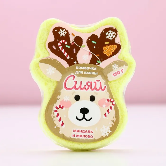 Бомбочка для ванны «Сияй!», 130 г, аромат миндаля и молока, Чистое счастье — Характеристики