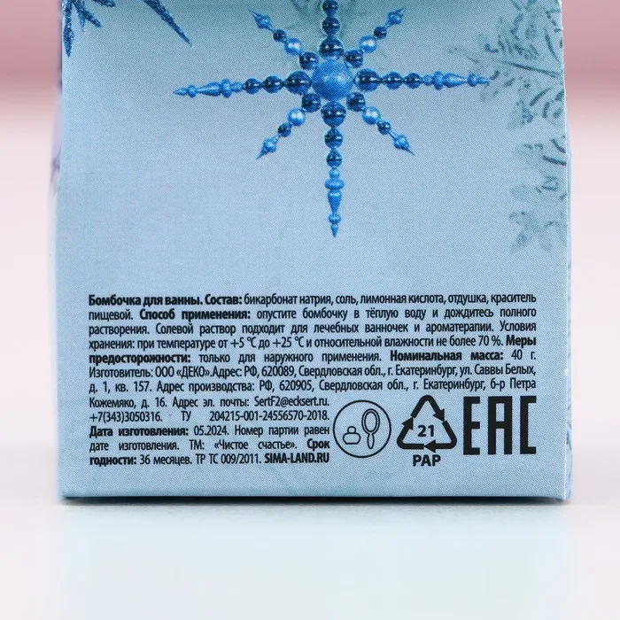 Бомбочка для ванны «Уютного Нового Года», 40 г, аромат голубики, Чистое счастье — Характеристики