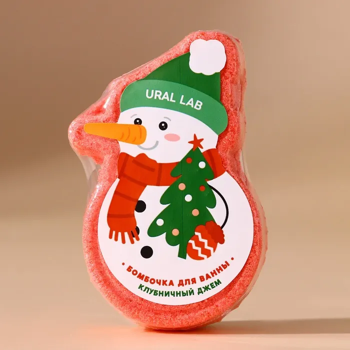 Бомбочка для ванны URAL LAB «Снеговик», 100 г, аромат клубничного джема, Новый Год — Характеристики