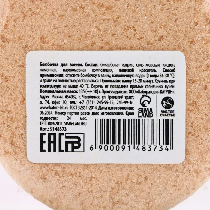 Бомбочка для ванны «Время чудес», 135 г, аромат лаванды, Чистое счастье — Характеристики