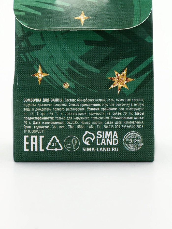 Бомбочка для ванны Winter holidays, 40 г, еловый аромат, Ural Lab — Характеристики