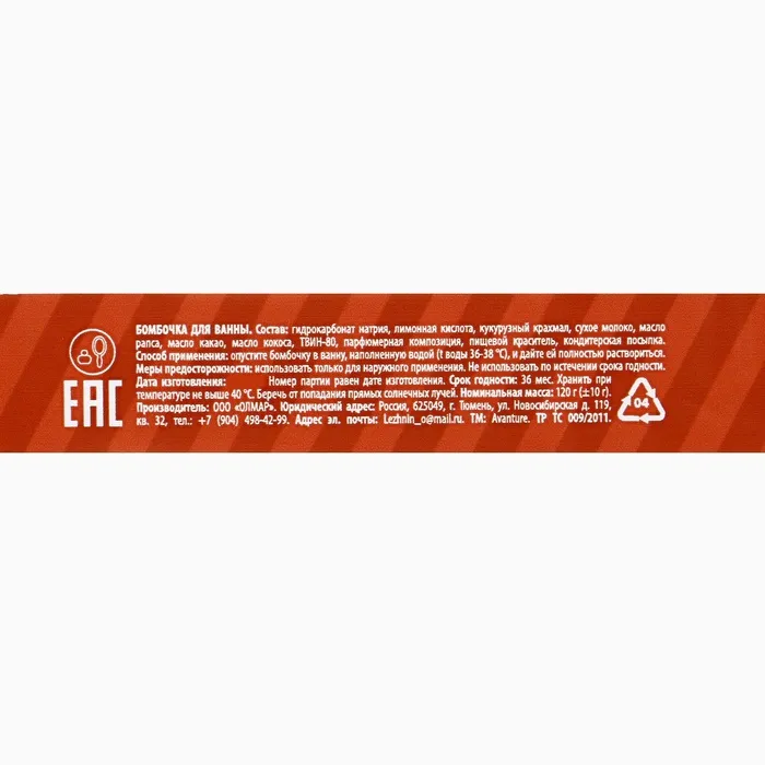 Бомбочка для ванны «Зимнего чуда», 120 г, аромат пряного апельсина, Чистое счастье — Характеристики