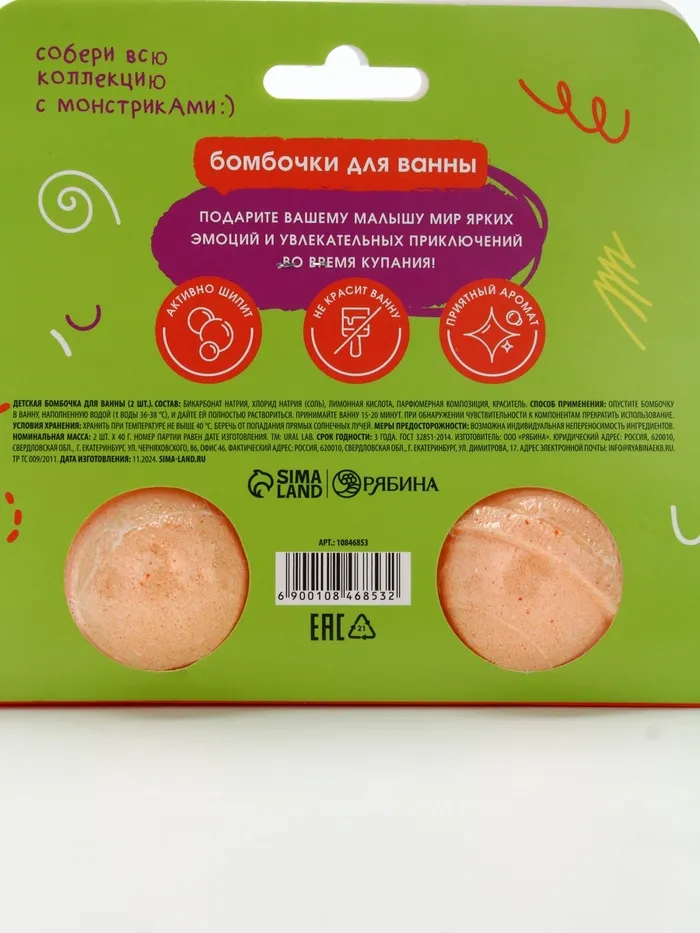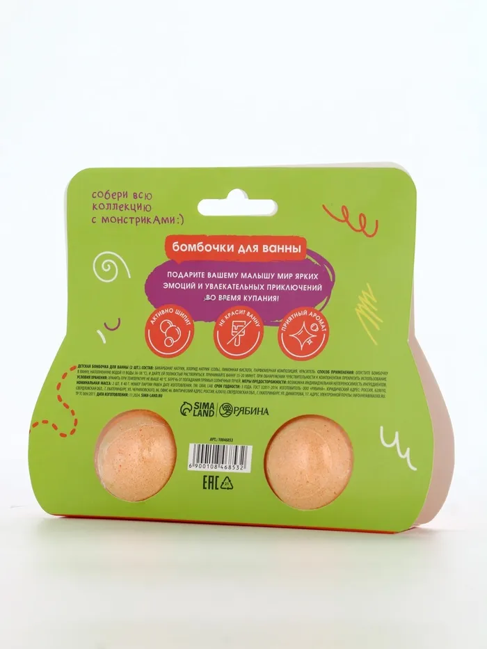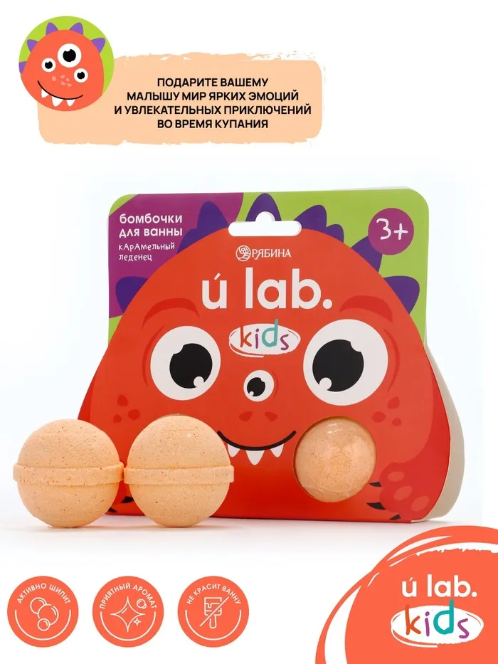 Бомбочки детские для ванны «Монстрики», 2×40 г, аромат карамельный леденец ULAB — Характеристики