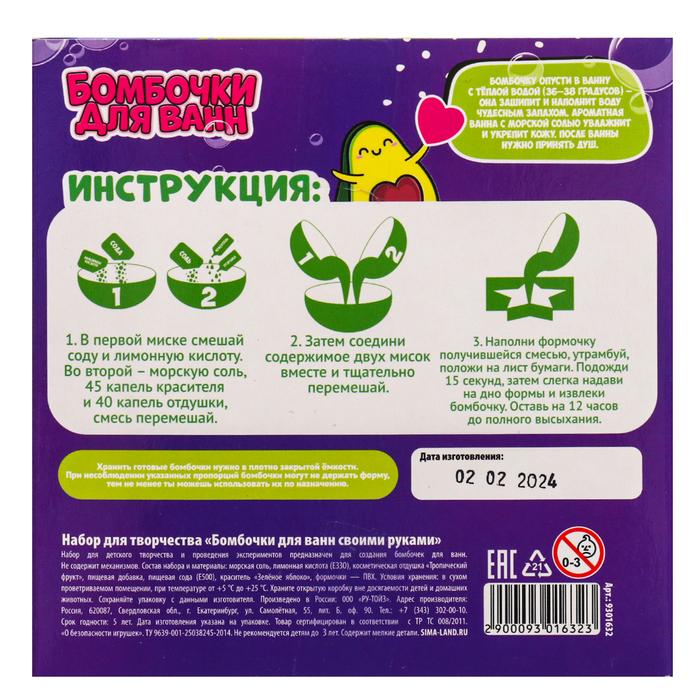 Бомбочки для ванн своими руками «Милое авокадо», 1 форма — Характеристики