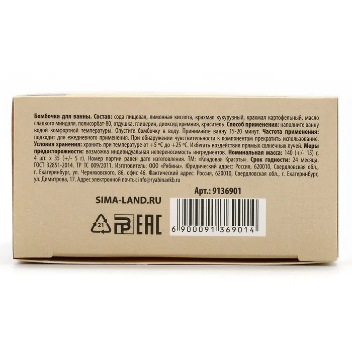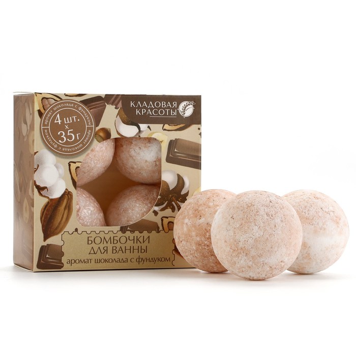 Бомбочки для ванны 4×35 г, аромат шоколада, Кладовая красоты — Характеристики