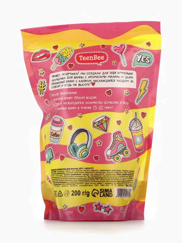 Бомбочки для ванны, аромат дыни и малины, 200 г, TeenBee — Характеристики