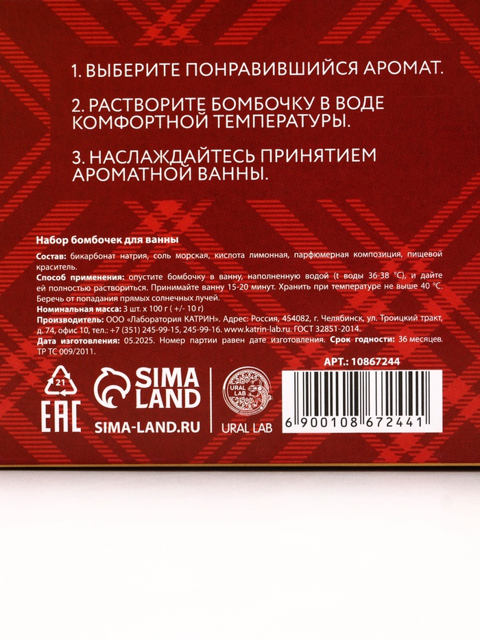 Бомбочки для ванны, аромат: глинтвейн, печенье и тыква, набор 3×100 г, Ural Lab — Характеристики