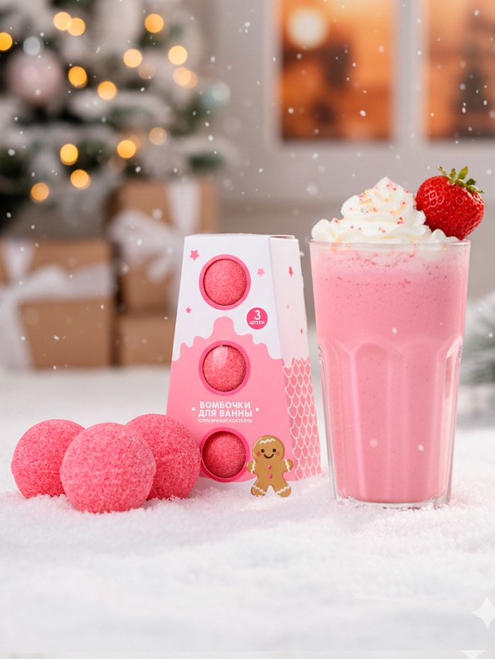 Бомбочки для ванны, аромат клубничный коктейль, набор 3 шт. × 40 г, URAL LAB — Характеристики