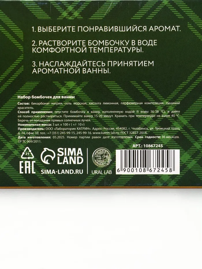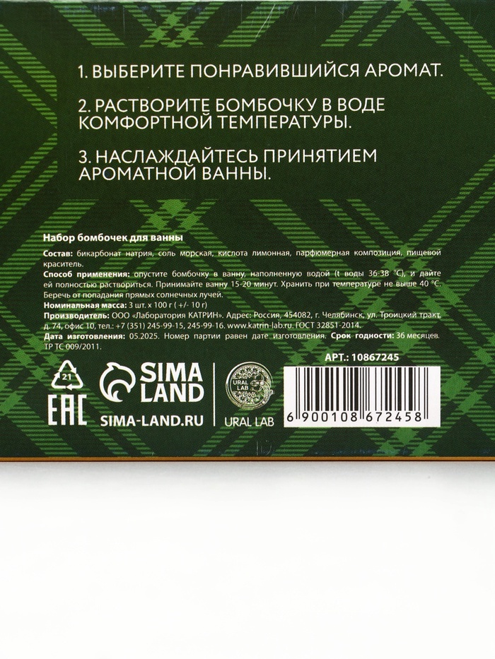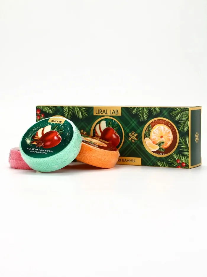Бомбочки для ванны, аромат: мандарин, яблоко, апельсин, набор 3×100 г, Ural Lab — Характеристики