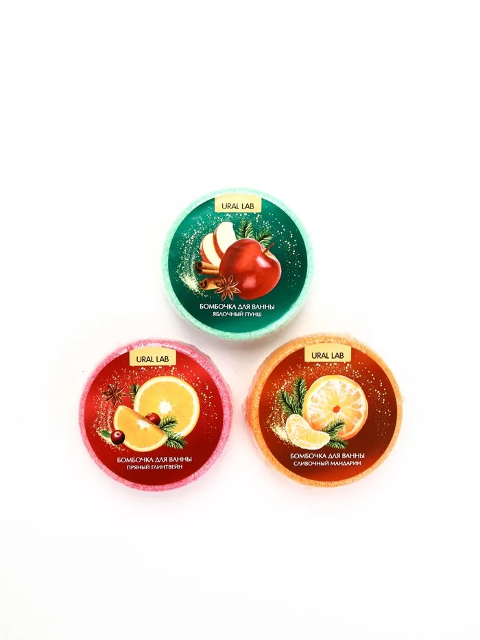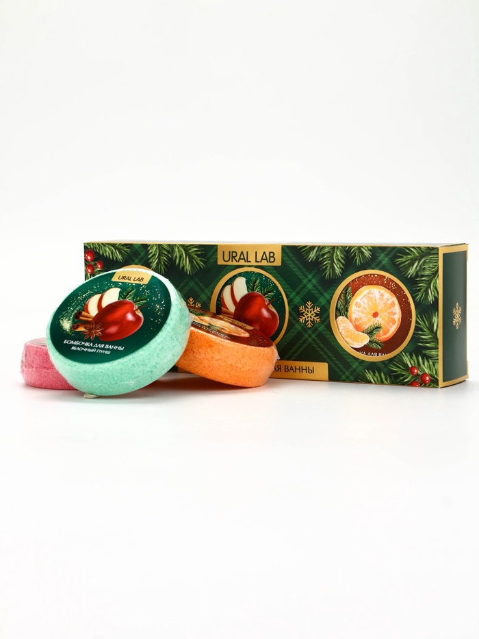 Бомбочки для ванны, аромат: мандарин, яблоко, апельсин, набор 3×100 г, Ural Lab