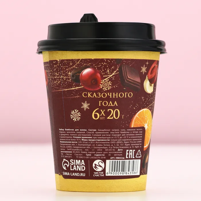 Бомбочки для ванны «Ароматного праздника», аромат пряный глинтвейн, 6×20 г, Чистое счастье — Характеристики