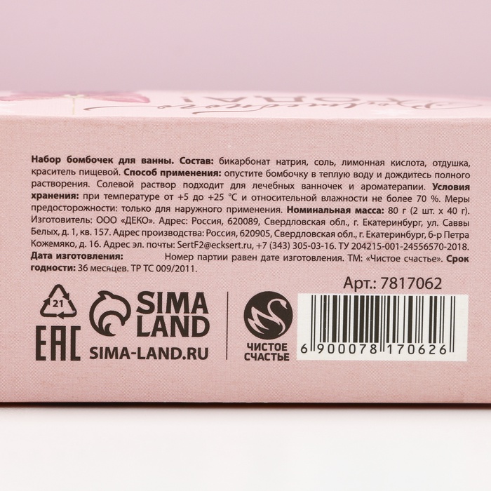 Бомбочки для ванны «Чудес!», 2×40 г, аромат нежная лаванда, Чистое счастье — Характеристики
