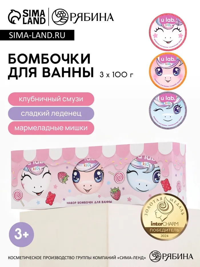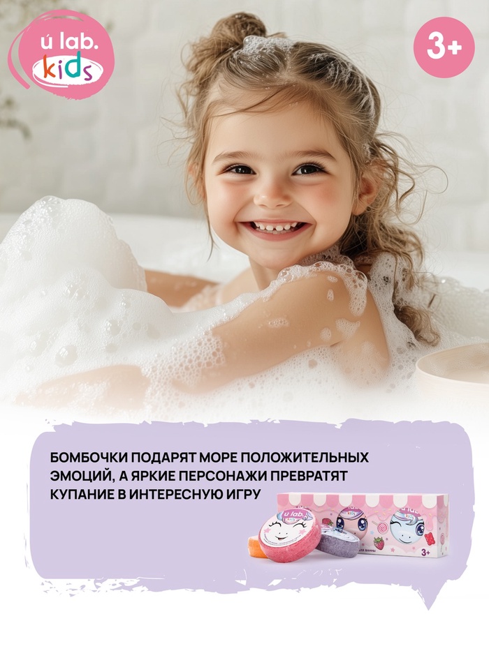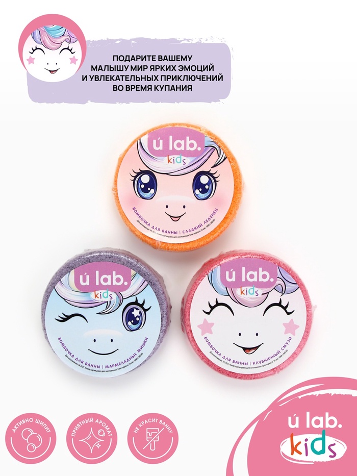 Бомбочки для ванны детские «Единороги», набор 3×100 г, ULAB — Характеристики
