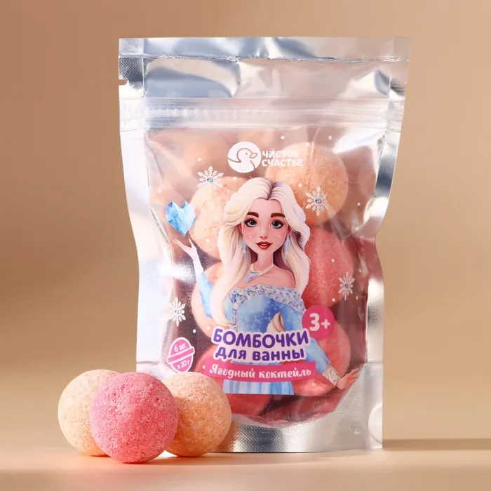 Бомбочки для ванны детские «Принцесса», аромат ягодный коктейль, 6×20 г, Чистое счастье — Характеристики
