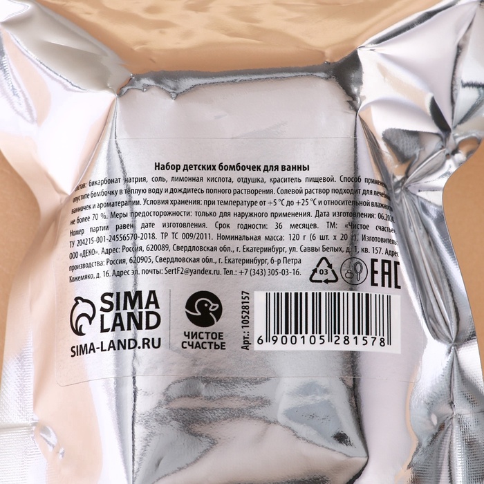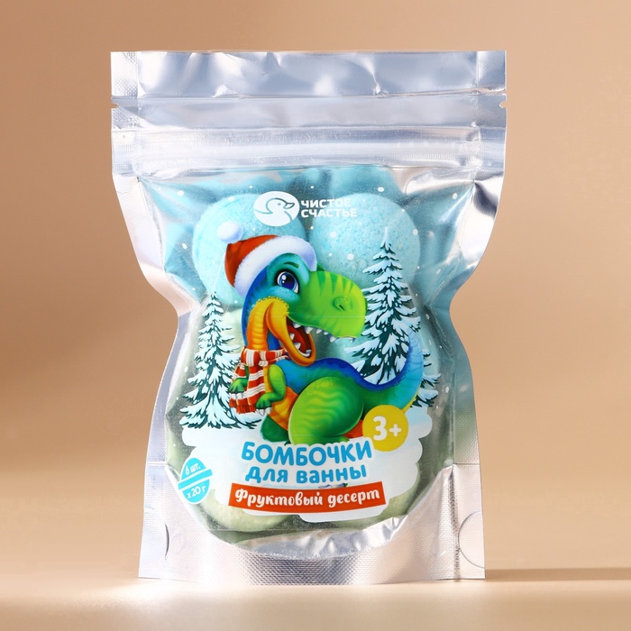 Бомбочки для ванны «Динозаврик», аромат фруктовый десерт, 6×20 г, Чистое счастье — Характеристики