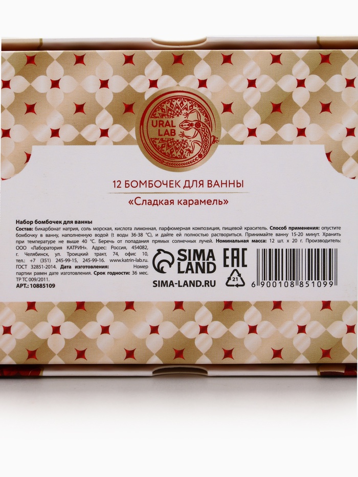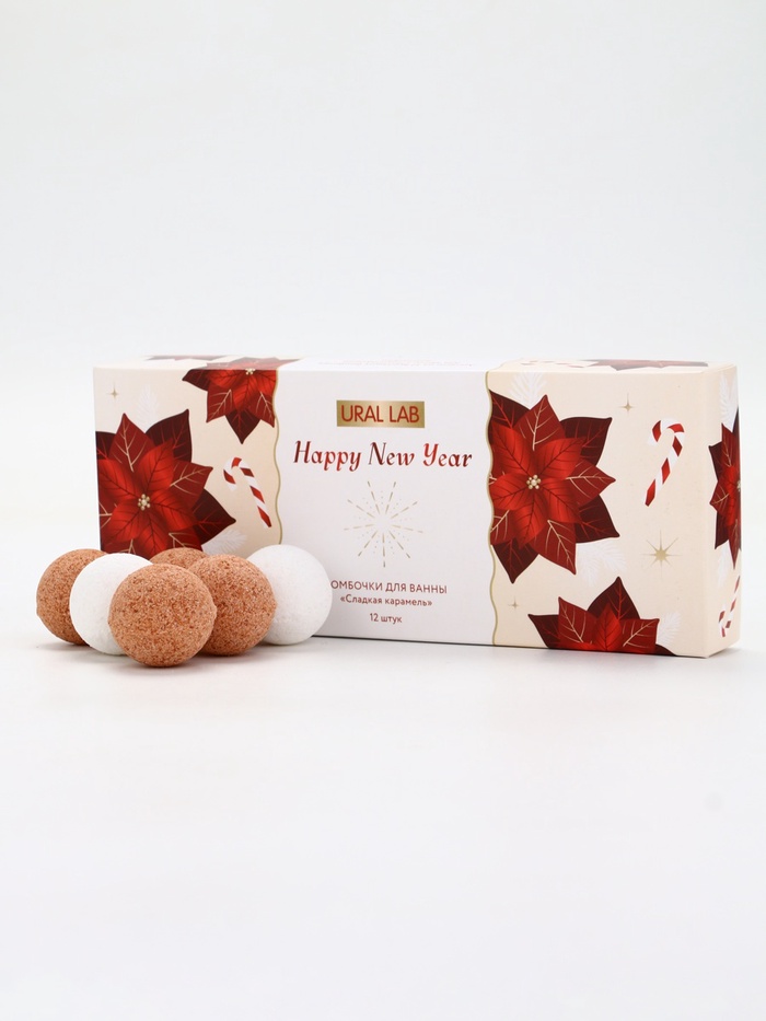 Бомбочки для ванны Happy New Year, аромат сладкая карамель, набор 12 шт. × 20 г, URAL LAB — Характеристики