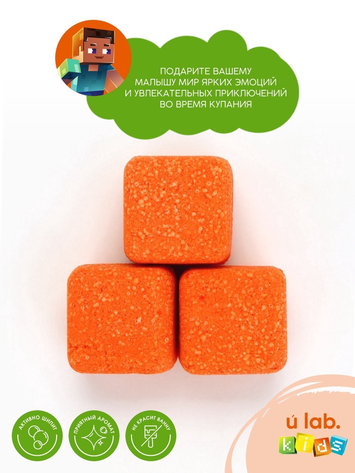 Бомбочки для ванны «Кубики», набор 3 шт. × 70 г, аромат шипучий апельсин, URAL LAB — Характеристики