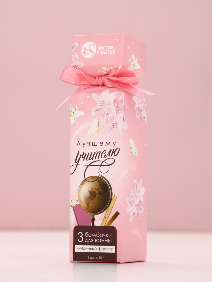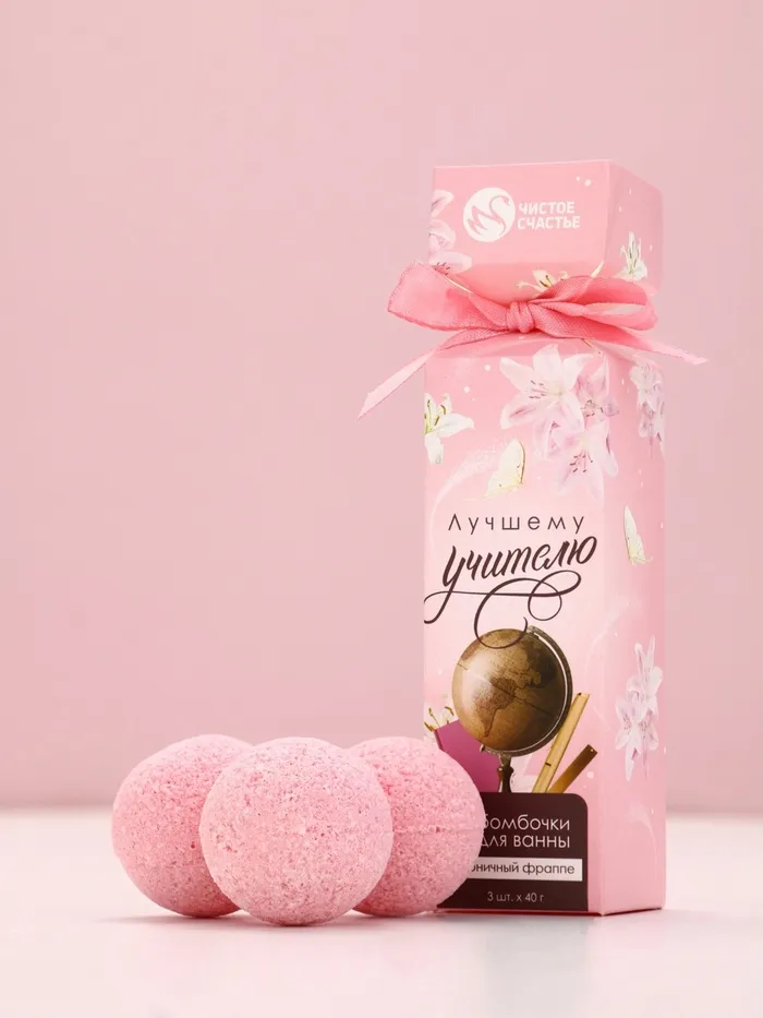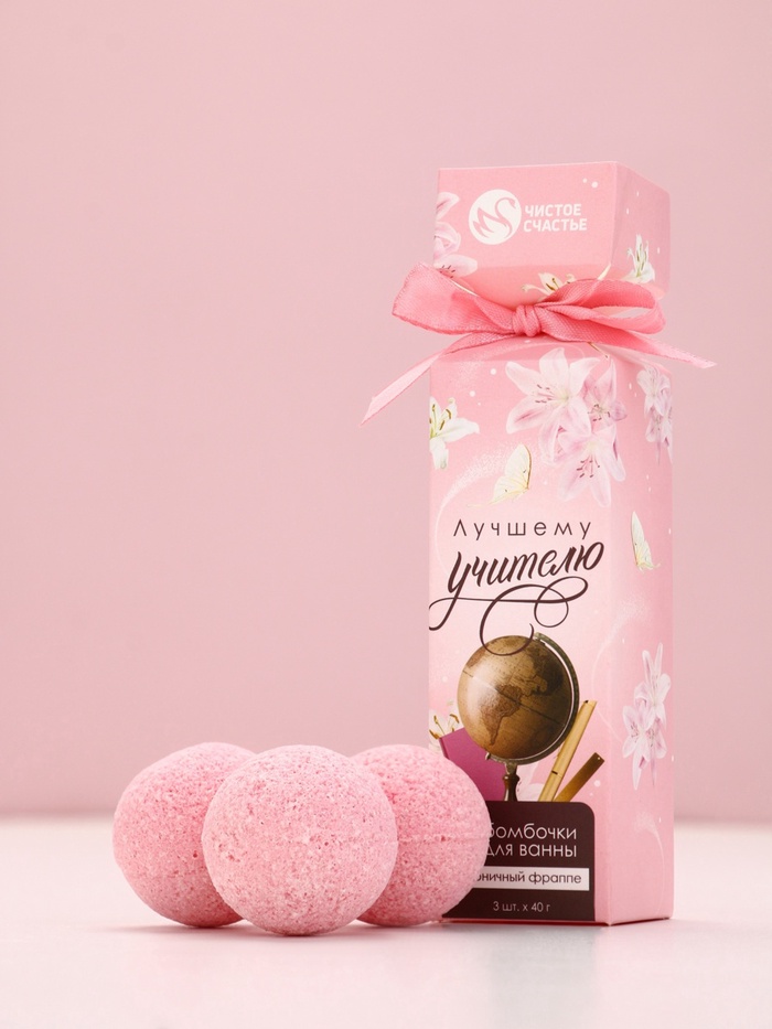 Бомбочки для ванны «Лучшему учителю», набор 3 шт х 40 г, аромат клубничный фраппе, Чистое счастье — Характеристики