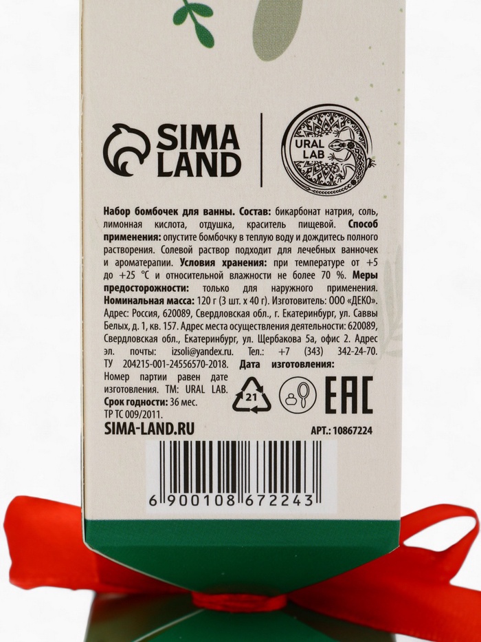 Бомбочки для ванны Magical warm winter, набор 3 шт. × 40 г, праздничная ель, URAL LAB — Характеристики