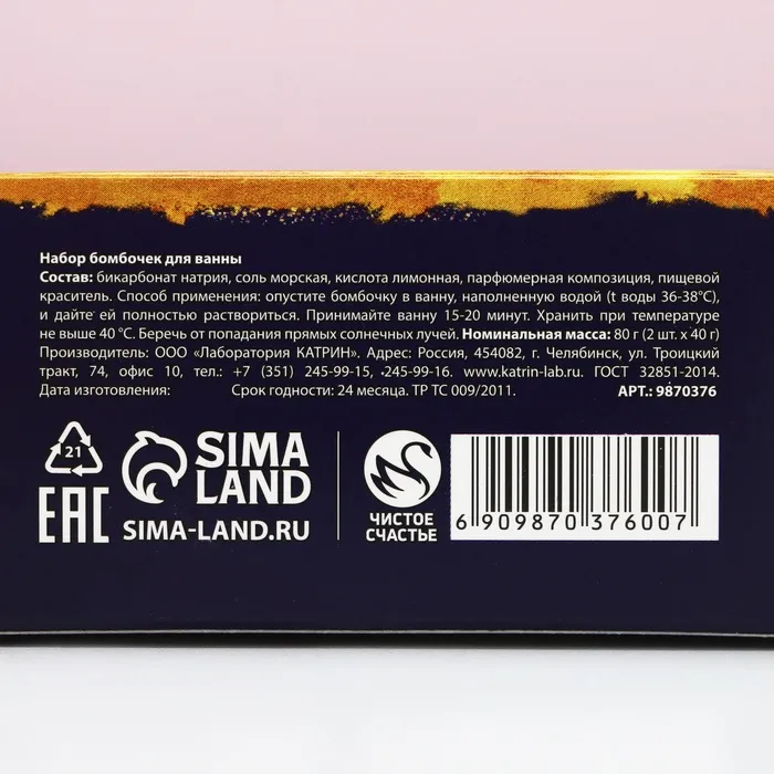 Бомбочки для ванны «Праздничная ночь», 2×40 г, Чистое счастье — Характеристики