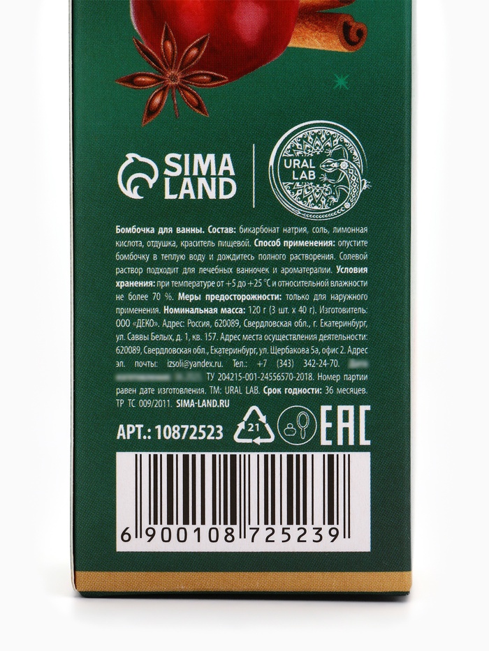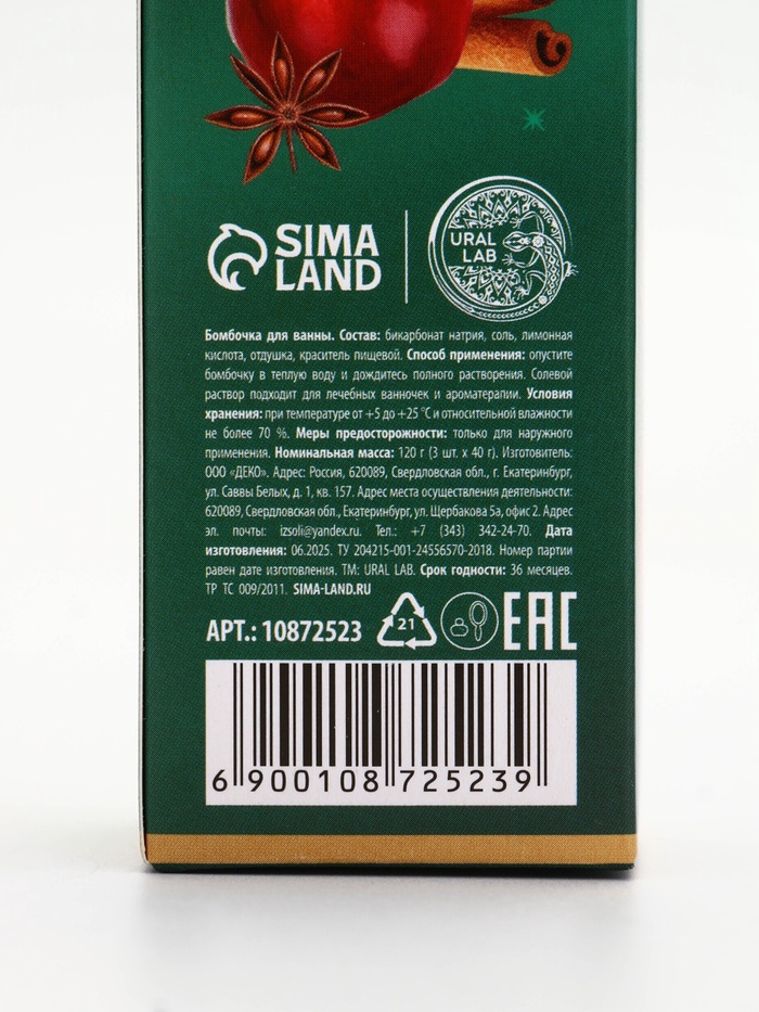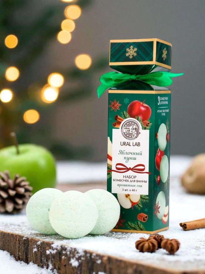 Бомбочки для ванны с ароматом яблочного пунша, 3×40 г, URAL LAB — Характеристики