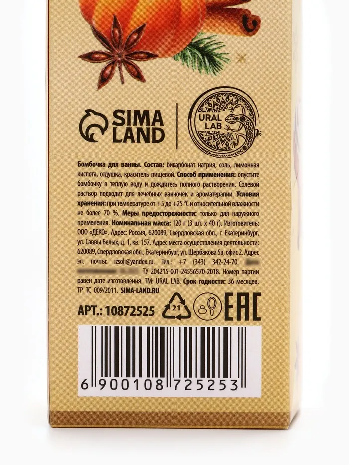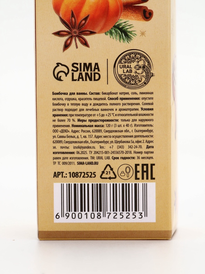 Бомбочки для ванны с ароматом тыквенного штруделя, 3×40 г, URAL LAB — Характеристики