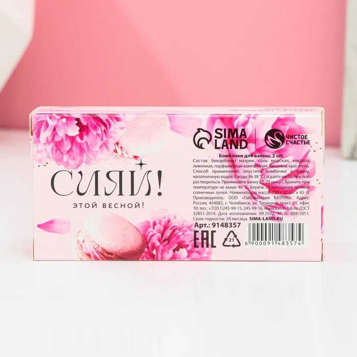Бомбочки для ванны с добавками «Мечтай!», аромат ягодный десерт, 2×65 г, Чистое счастье — Характеристики