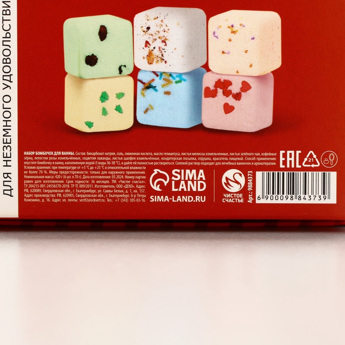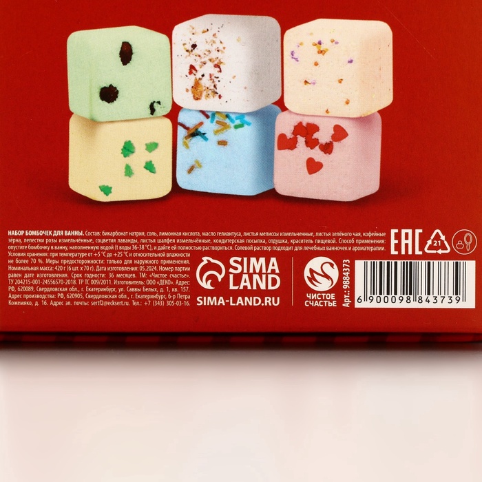 Бомбочки для ванны с добавками «Праздничная посылка», 6×70 г, Чистое счастье — Характеристики