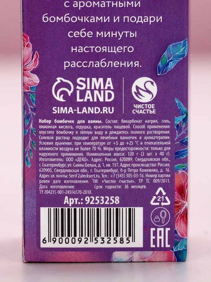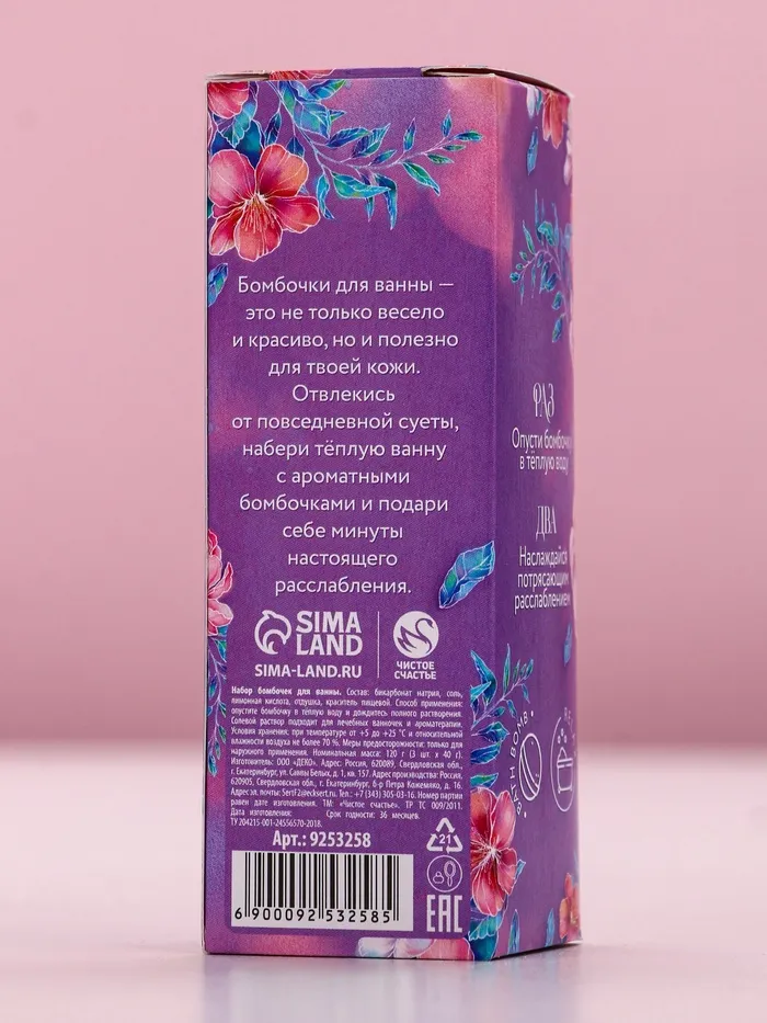 Бомбочки для ванны с добавками «С 8 Марта», 3×40 г, Чистое счастье — Характеристики