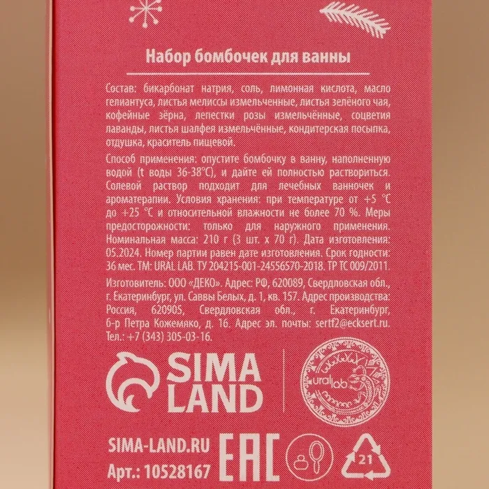 Бомбочки для ванны с добавками «С Новым годом», 3×70 г, URAL LAB — Характеристики