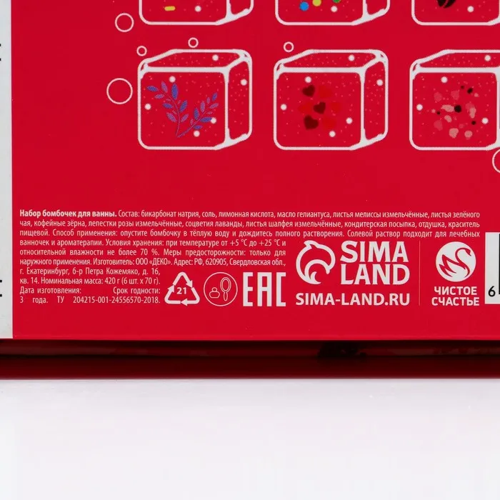 Бомбочки для ванны с добавками «Сияй!», 6×70 г, Чистое счастье — Характеристики