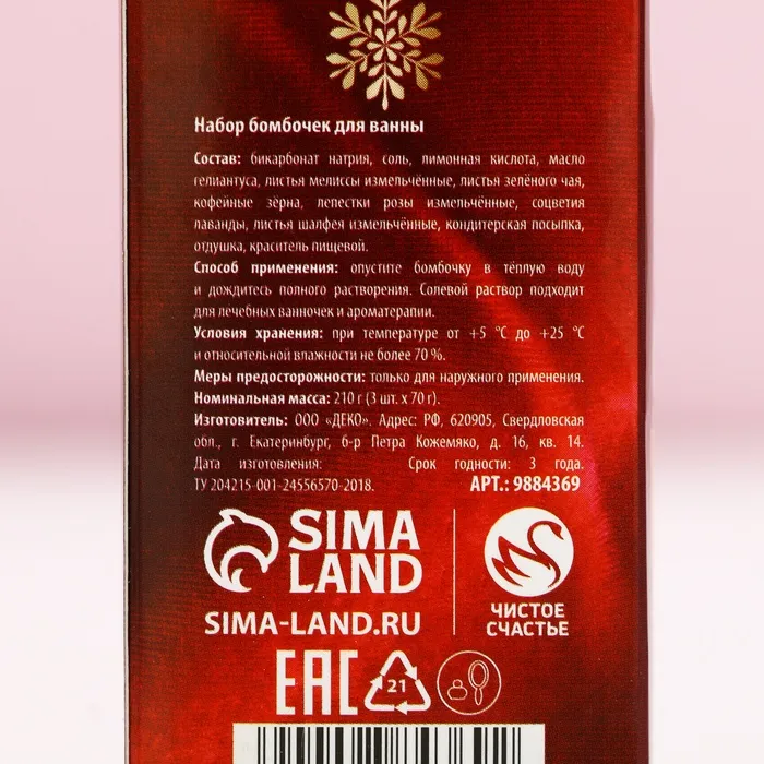 Бомбочки для ванны с добавками «Тепла», 3×70 г, аромат яблоко, Чистое счастье — Характеристики