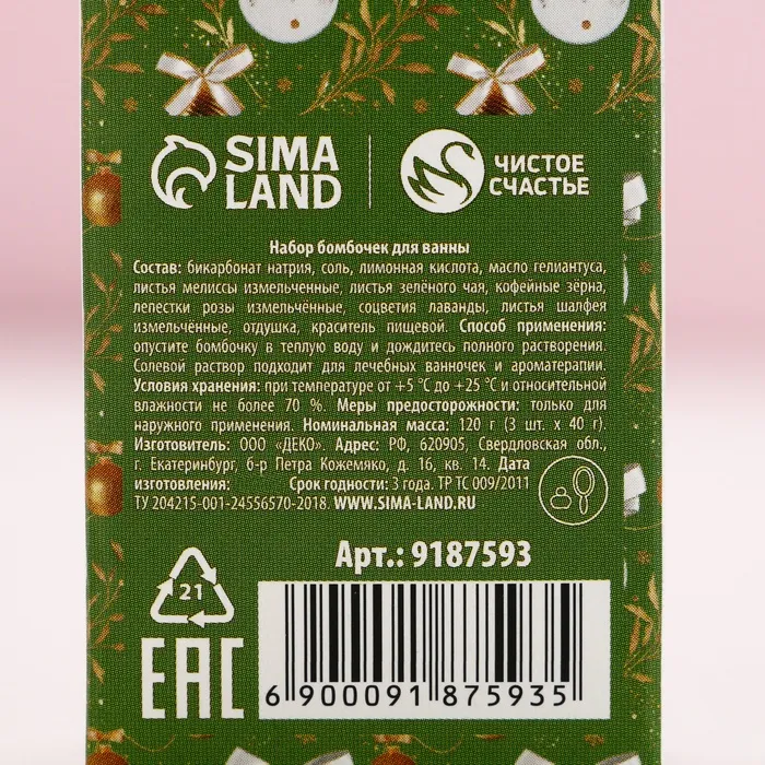Бомбочки для ванны с добавками «Верь в чудеса!», 3×40 г, аромат мелисса, шалфей, зелёный чай, Чистое счастье — Характеристики