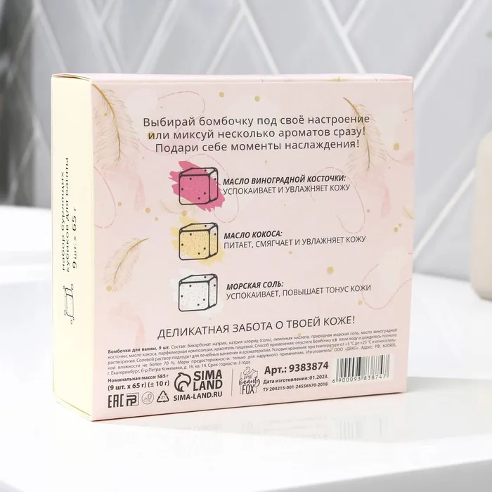 Бомбочки для ванны с маслами и морской солью «Роскошное увлажнение», 9×65 г, Beauty Fox — Характеристики