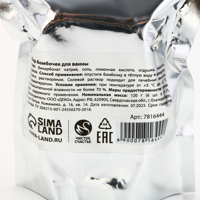 Бомбочки для ванны «С Новым Годом», аромат лаванда, мёд, 6×20 г, Чистое счастье — Характеристики