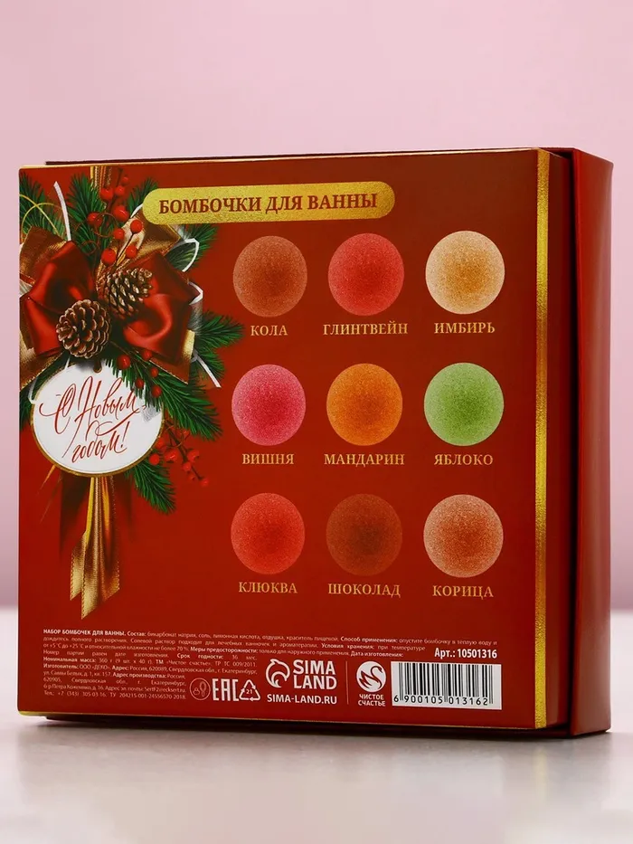 Бомбочки для ванны «С праздником», 9×40 г, Чистое счастье — Характеристики