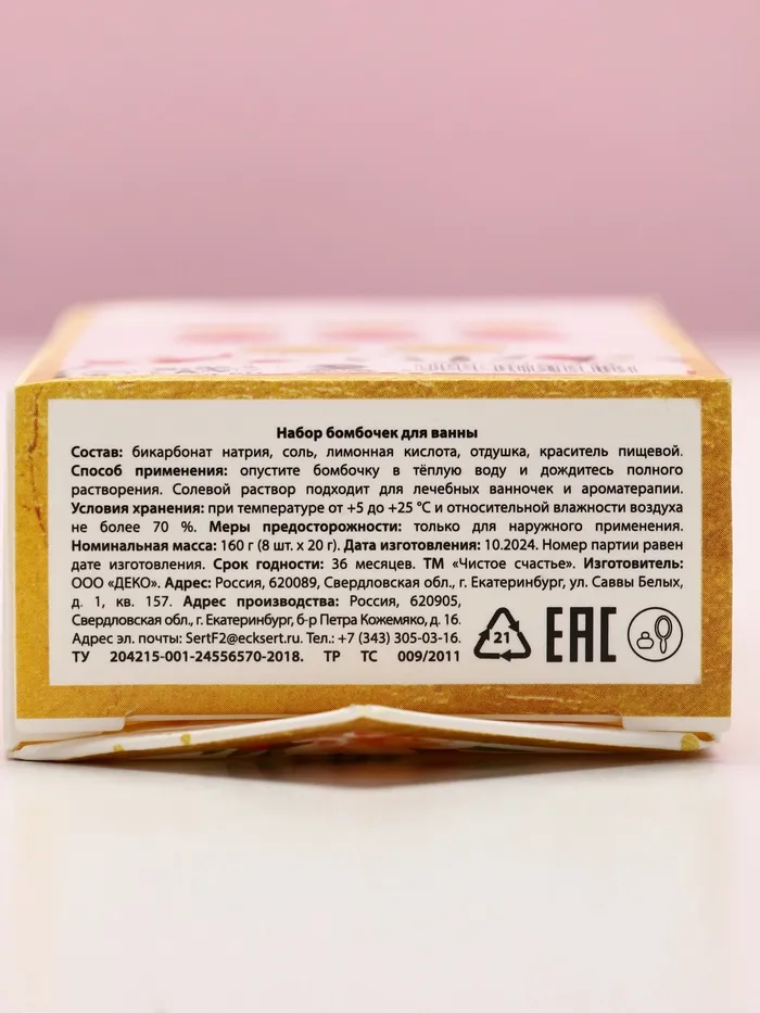 Бомбочки для ванны «Самой прекрасной», 8×20 г, Чистое счастье — Характеристики