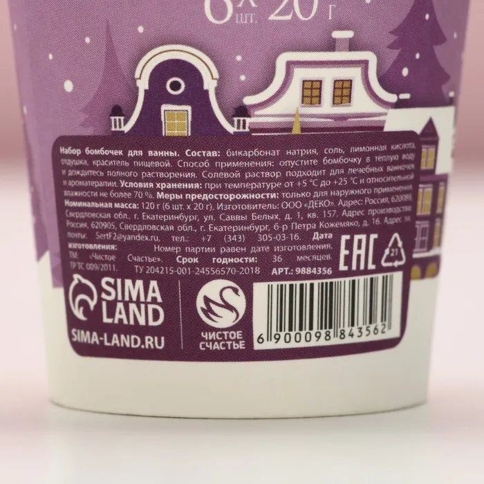 Бомбочки для ванны «Сияй круглый год», 6×20 г, аромат лаванды, Чистое счастье — Характеристики