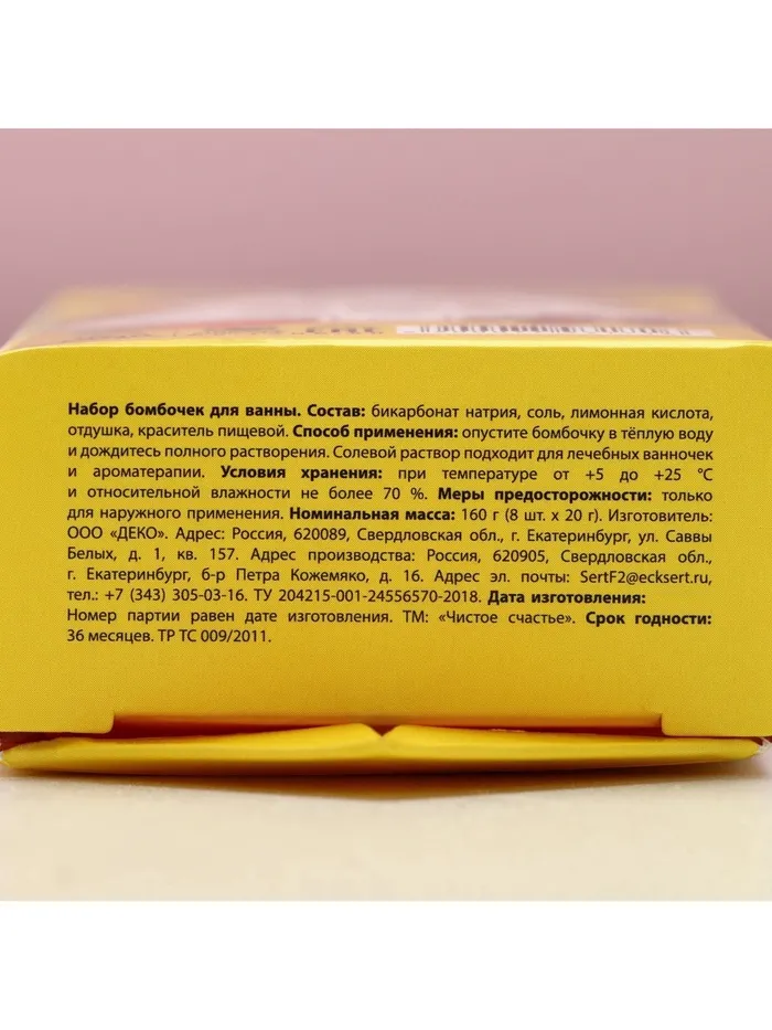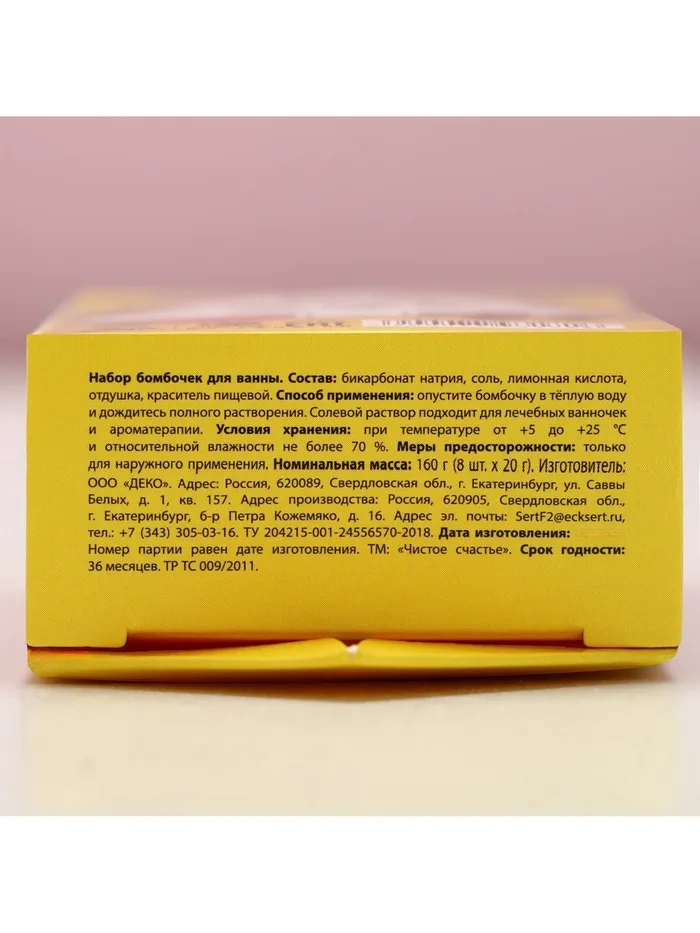 Бомбочки для ванны «Сказка», аромат ягода, цитрус, яблоко, 8×20 г, Чистое счастье — Характеристики