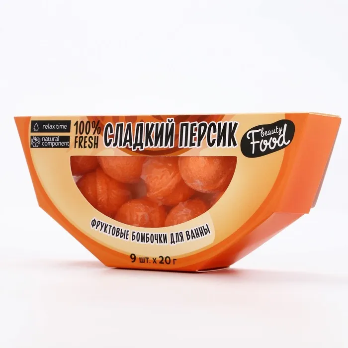 Бомбочки для ванны «Сладкий персик», 9×20 г, аромат персика, BEAUTY FOOD — Характеристики