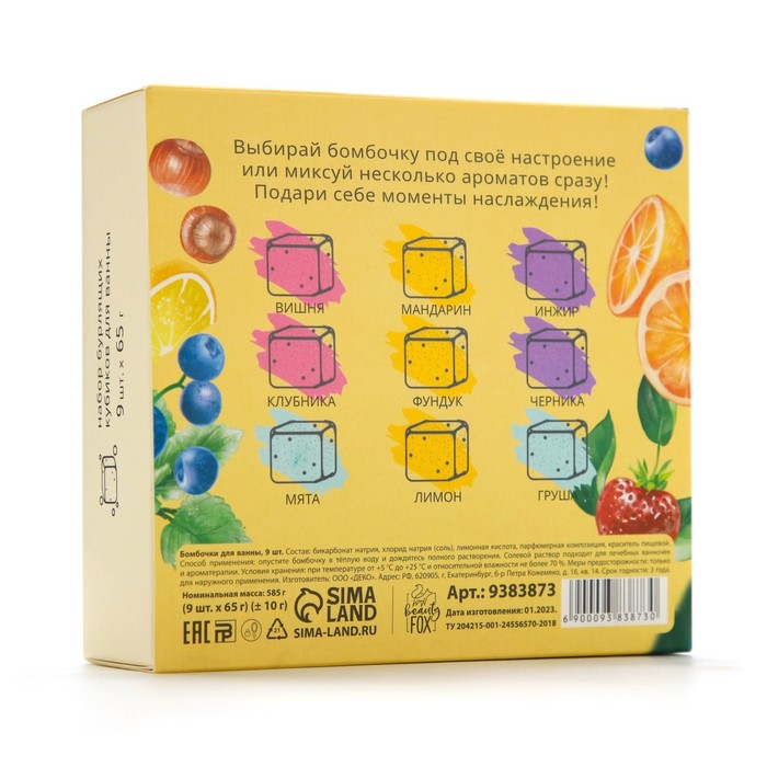 Бомбочки для ванны «Сладких моментов», 9×65 г, BEAUTY FOX — Характеристики